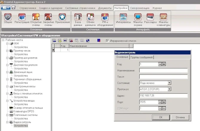 Пример настройки ПО Frontol: