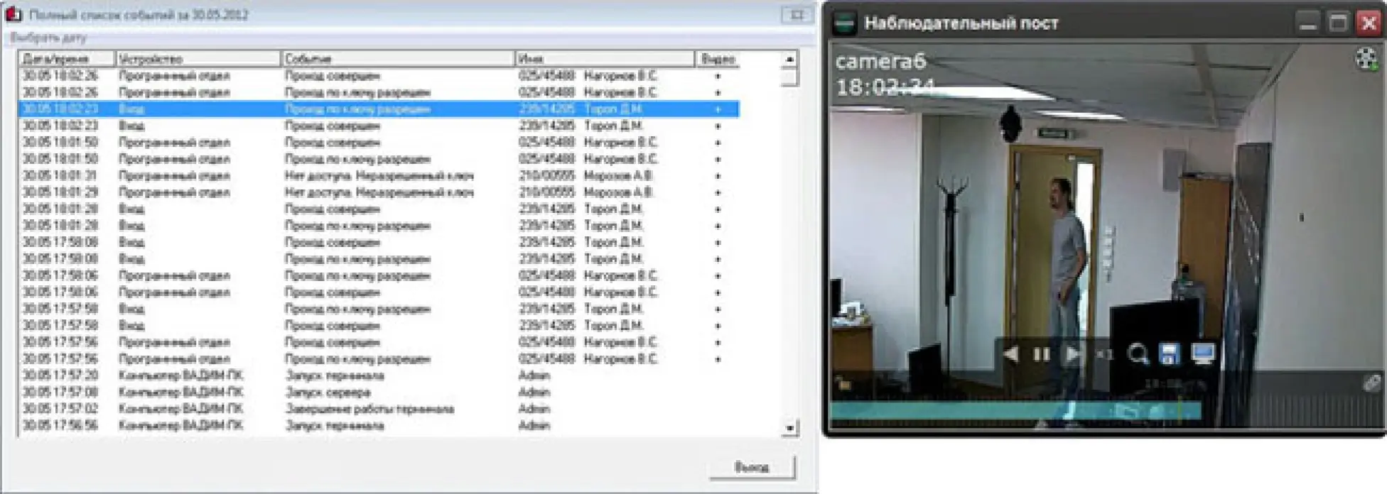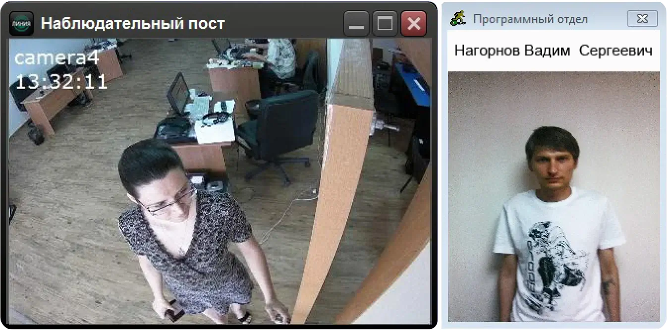 Дополнительные пользовательские настройки реакций СКУД Gate на необходимые события вызывают окно «Наблюдательный пост» системы видеонаблюдения «Линия», и на экране оператора СКУД появляется окно с трансляцией текущего видеопотока с указанной камеры. Данная операция может являться дополнением штатного режима фотоверификации, либо отдельной реакцией на заданное событие конкретной точки доступа СКУД.
