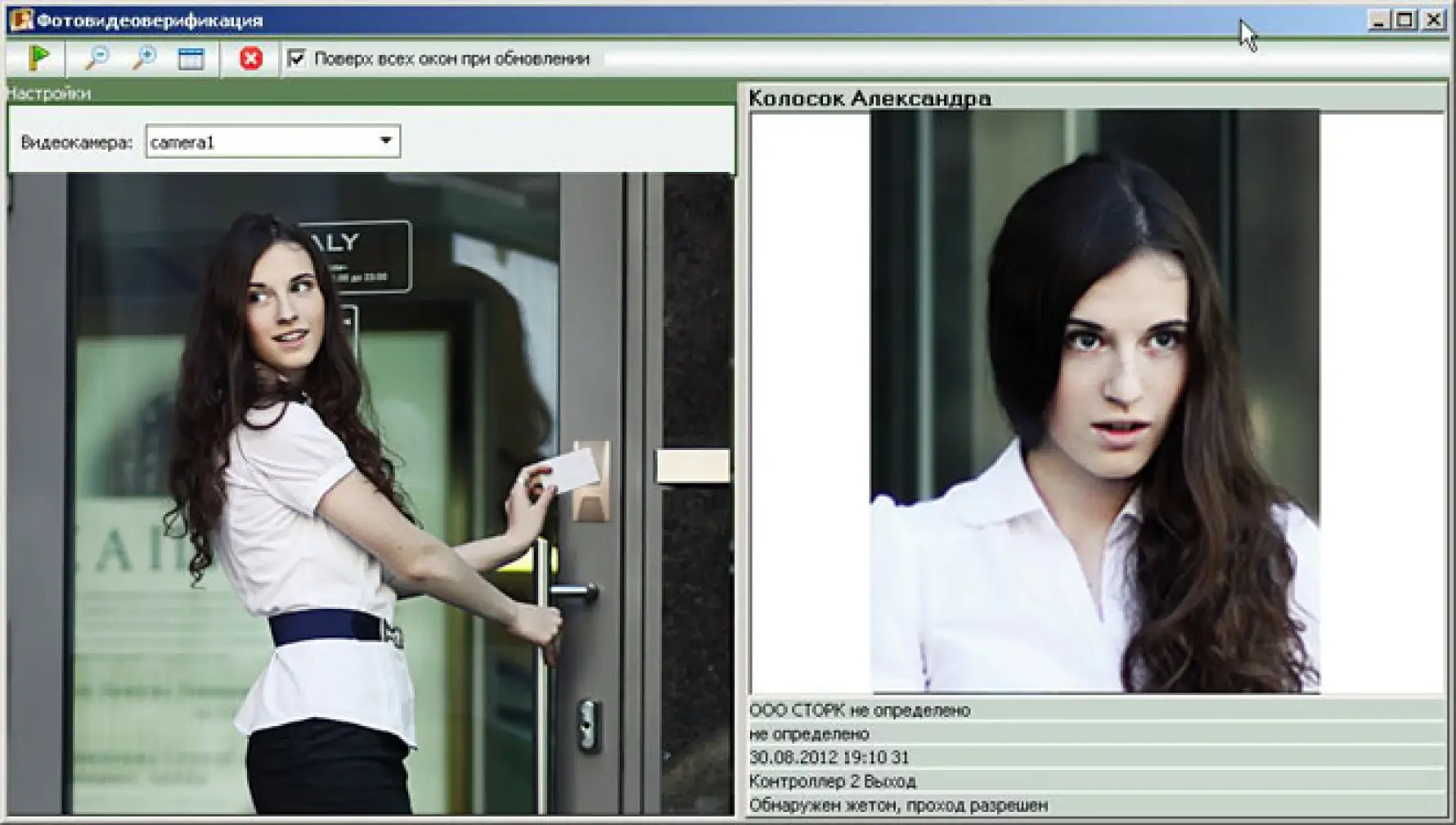 Видео с привязанных к конкретным точкам доступа камер транслируется на рабочем месте оператора в интерфейсе СКУД Stork
