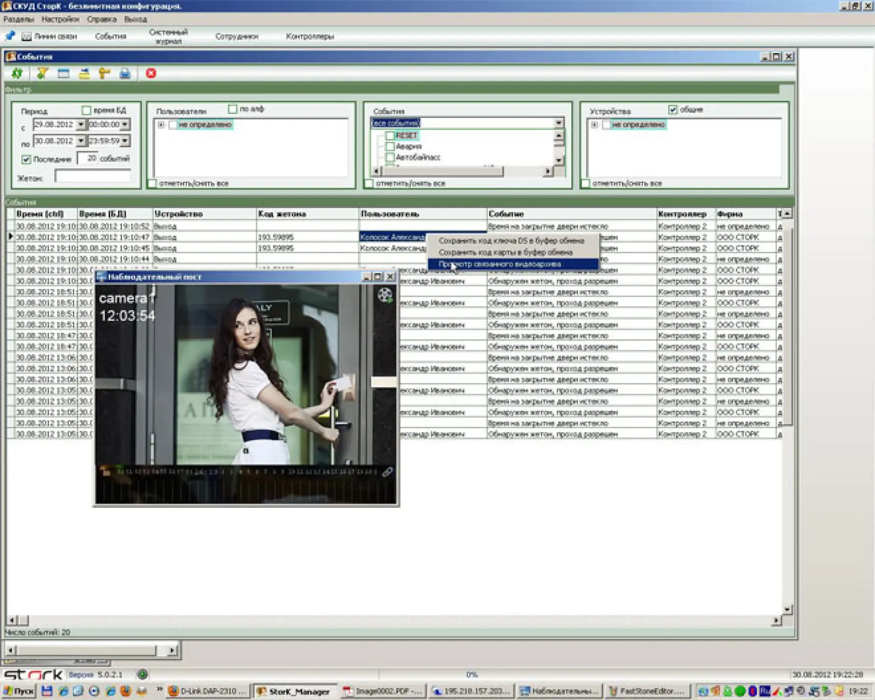 Совместная работа СКУД Stork с системой видеонаблюдения «Линия»